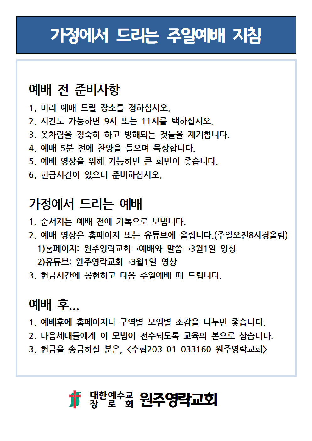 ±³È¸¿¹¹è¸¦ µå¸± ¼ö Àֱ⸦ ¼Ò¸ÁÇÕ´Ï´Ù. ¿¹¹è¿Í ¸ðÀÓÀº ÁߴܵǾúÁö¸¸ ¸ðµç ±³¿ªÀÚµéÀº ¶È°°ÀÌ
