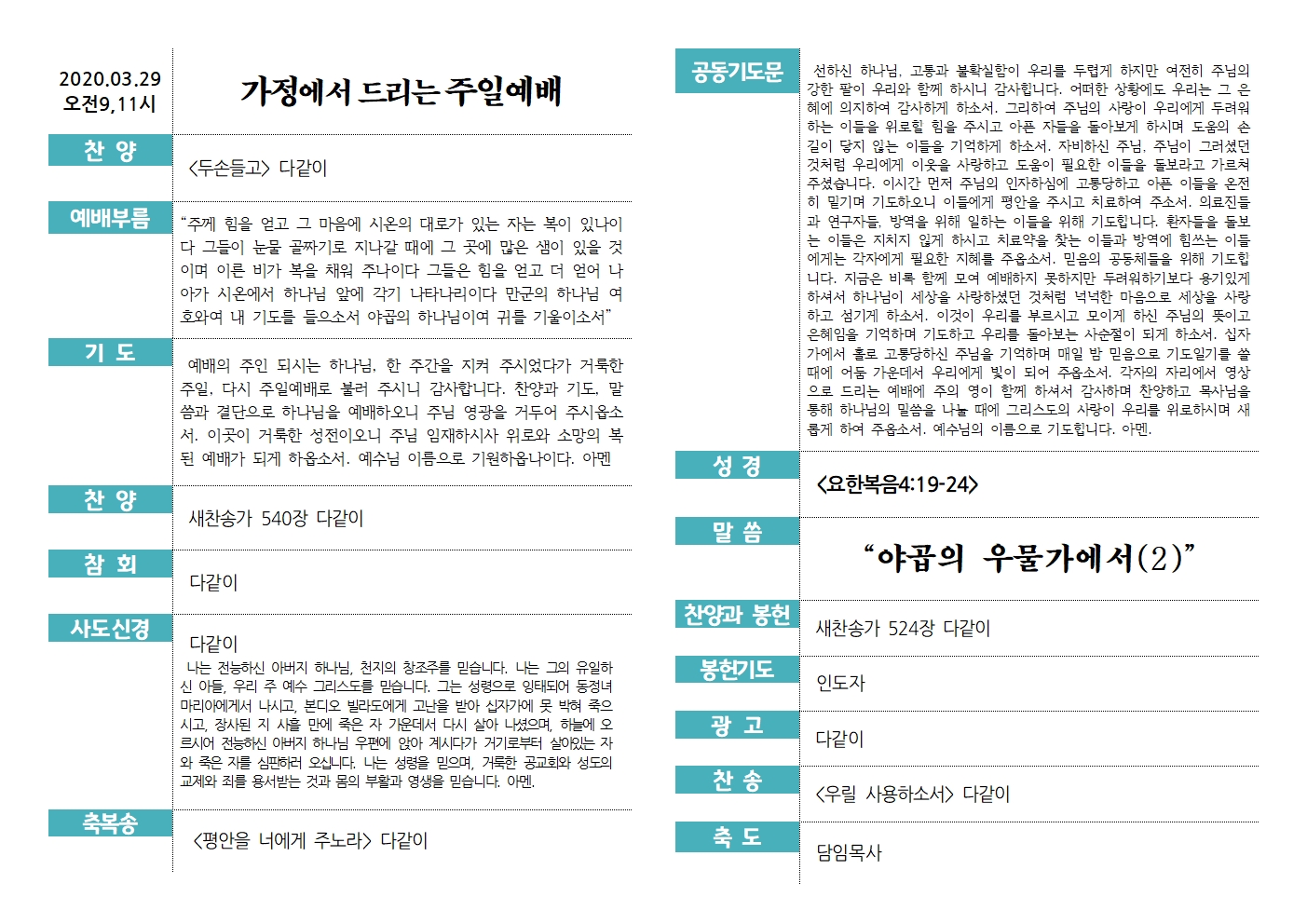 3¿ù 29ÀÏ °¡Á¤¿¡¼ µå¸®´Â ÁÖÀÏ¿¹¹è ¼ø¼Áö